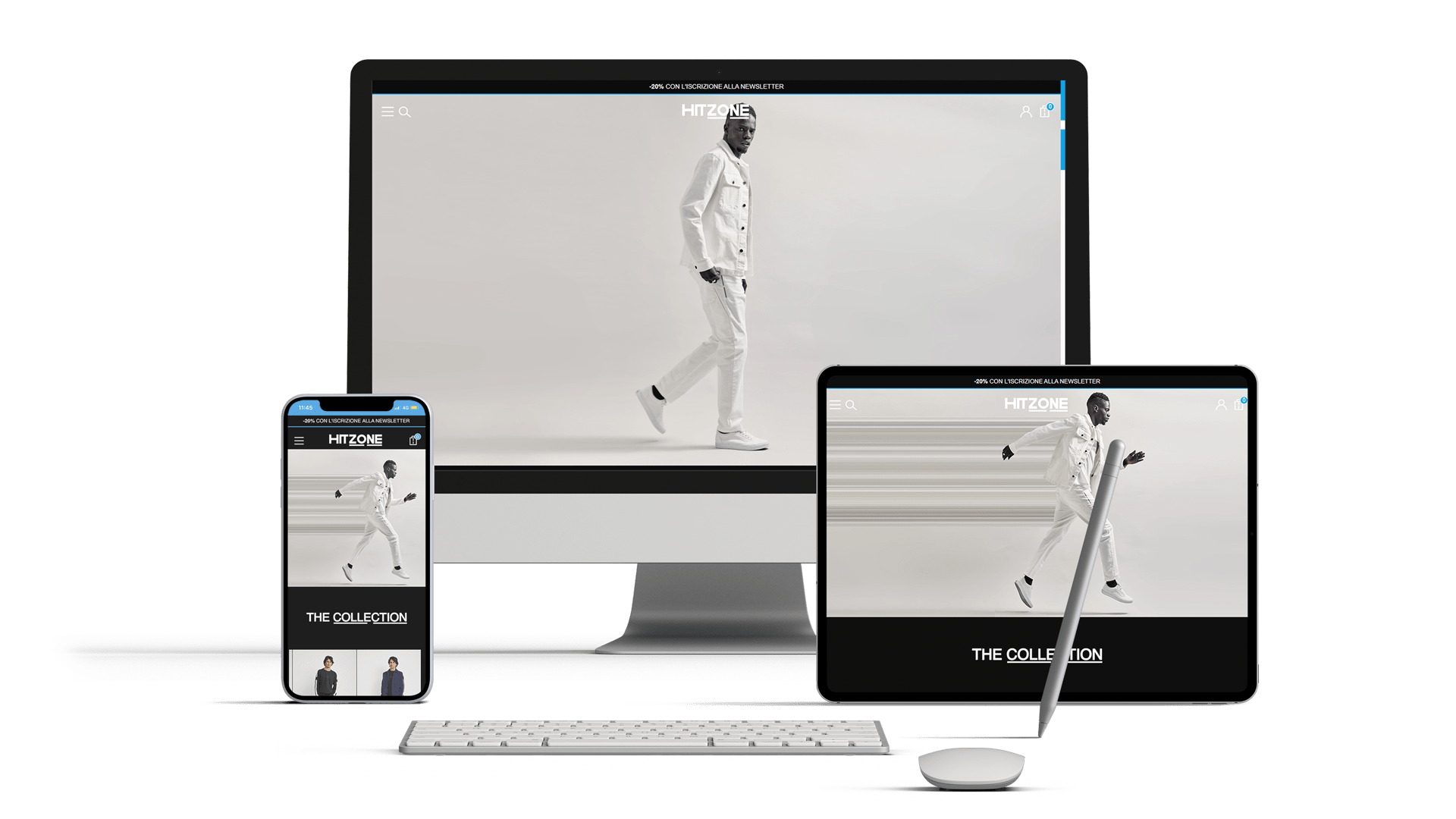 AEFFE Lab ha raccolto l’esigenza di comunicare il nuovo concept di HITZONE, realizzando un sito in pieno stile new urban e dal design smart, sviluppato su misura. La forte brand identity è esaltata dalle immagini di forte impatto, l’utilizzo del bianco e nero con alternanza di dettagli in blu, le icone dal design pulito e smart, tutto sviluppato su di uno stesso piano comunicativo. Tutte le principali categorie del sito sono immediatamente fruibili dal menu principale che si apre sul lato del sito, realizzati in ottica mobile first.